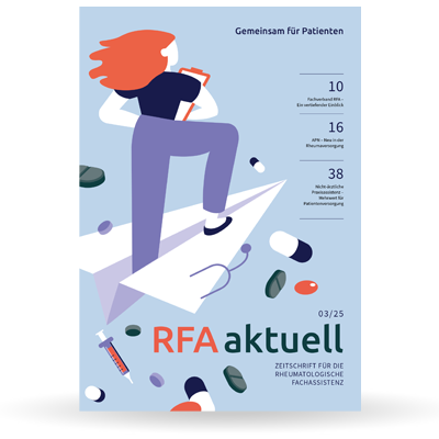 Wir beißen uns oftmals auch proaktiv an branchenspezifischen und berufspolitischen Themen fest, deren Bekanntmachung uns essenziell erscheint, und veröffentlichen eigeninitiativ entsprechende Printmedien. Das sind beispielsweise gesundheits- und berufspolitische Themen, Informationen zur Digitalisierung, Niederlassung oder Berichte über Fortbildungsmöglichkeiten zum Beispiel zur Rheumatologischen Fachassistenz. Natürlich sind die Summaries aus den wichtigsten rheumatologischen nationalen und internationalen Kongressen zu nennen, zum schnellen Lesen, denn auch lesen soll Spaß bereiten!